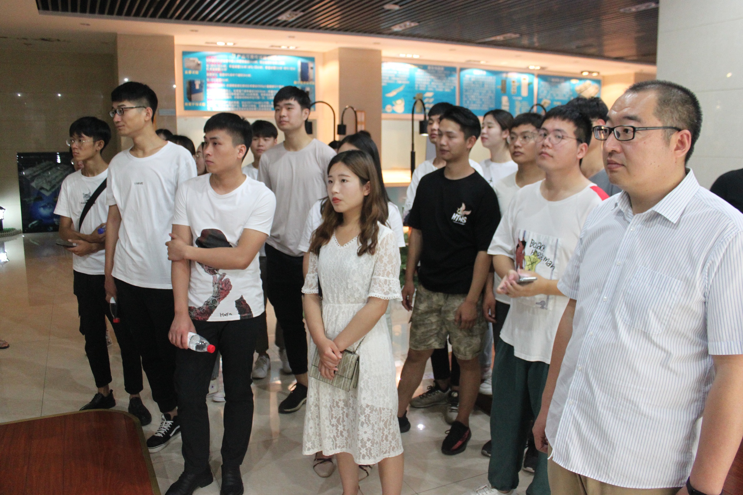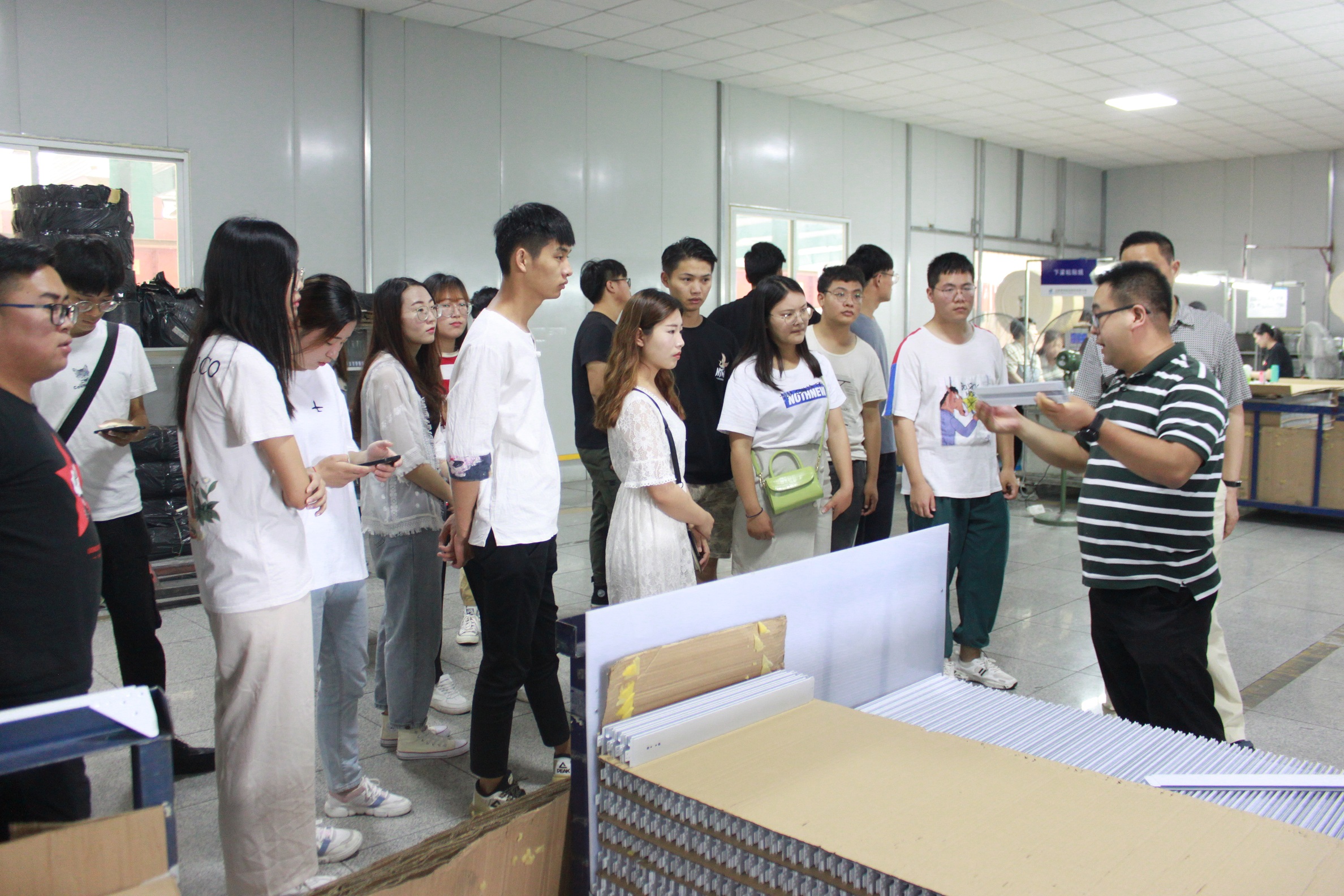參加此次接待工作的有綜合管理部長葉、行政經理馬向明,以及各生產部門負責人。同學們在公司行政大廳集合,葉部長對其介紹了公司的發展狀況與發展歷程,并對其約法三章:不掉隊、不亂碰、不隨意走動。