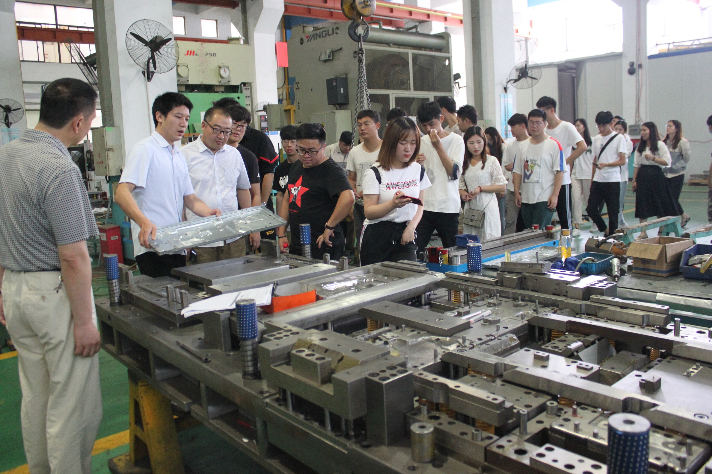 不知不覺參觀隊伍已經來到了第四站:模具事業部。由生產制造經理王釗帶隊,首先介紹的是強大隊伍設計中心,所有的產品構思與設計理念,都是出自這里。還分別介紹了成型研磨、水磨、慢走絲、線切割等工序。