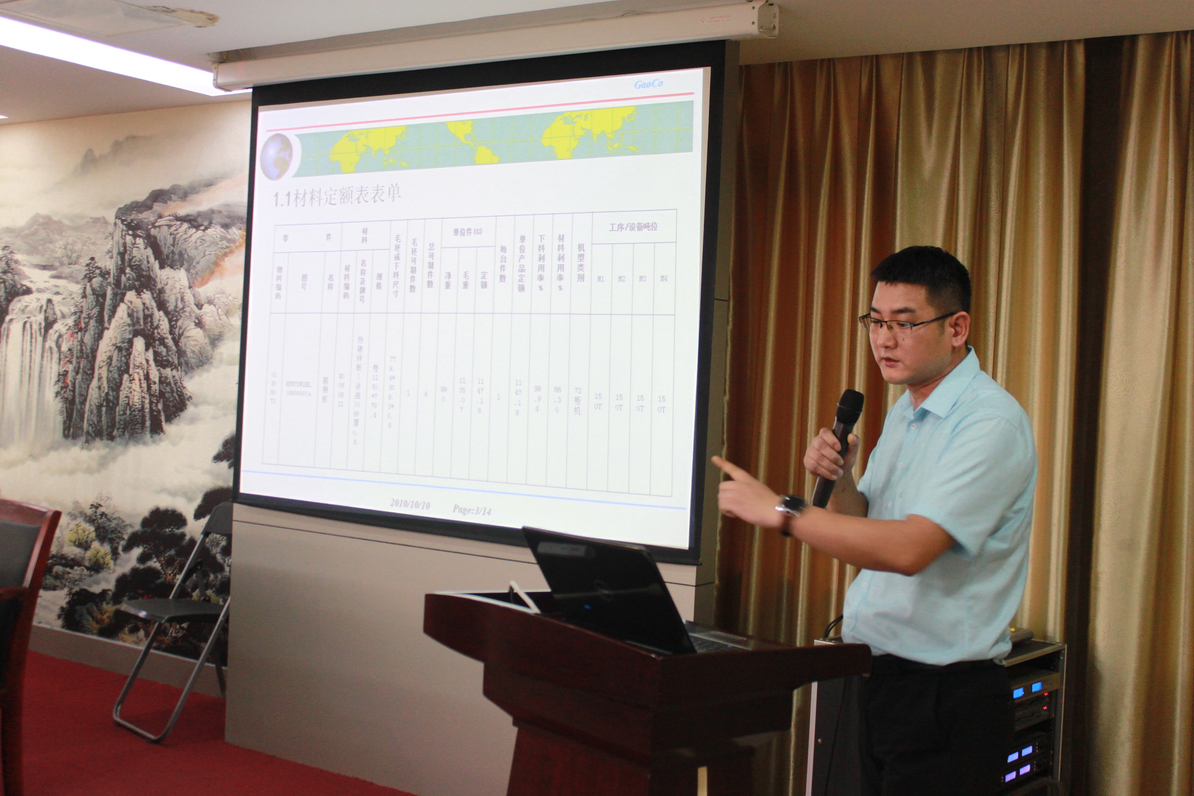 鈑金是針對金屬薄板(通常在6mm以下)一種綜合冷加工工藝,包括剪、沖/切/復(fù)合、折、鉚接、拼接、成型(如汽車車身)等。鈑金具有重量輕、強度高、導(dǎo)電(能夠用于電磁屏蔽)、成本低、大規(guī)模量產(chǎn)性能好等特點,在電子電器、通信、汽車工業(yè)、醫(yī)療器械等領(lǐng)域得到了廣泛應(yīng)用,合肥高科生產(chǎn)的鈑金件多為空調(diào)、冰箱、電視背板等產(chǎn)品。此次培訓(xùn),丁部長主要從以下六點知識進入:材料定額、設(shè)備噸位加工、產(chǎn)品回購價計算、財務(wù)結(jié)算、前側(cè)板計價實例,以及試題。