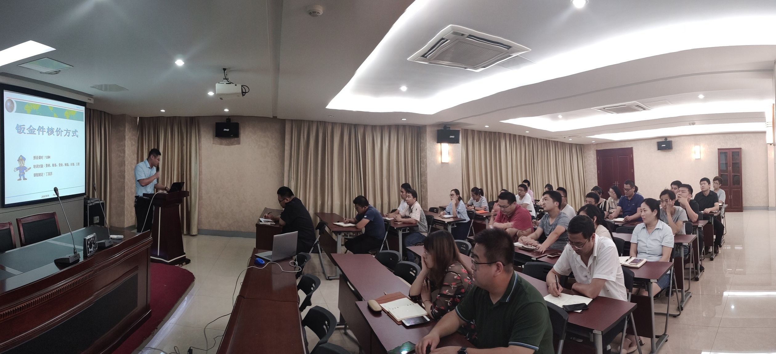 7月20日,烈日炎炎,地面滾燙焦灼,在公司的三樓大會議室里,卻是涼意舒適,在這里,合肥高科進行了第八次業(yè)務(wù)知識培訓(xùn)——鈑金件核價方式,由鈑金事業(yè)部丁部長主講。